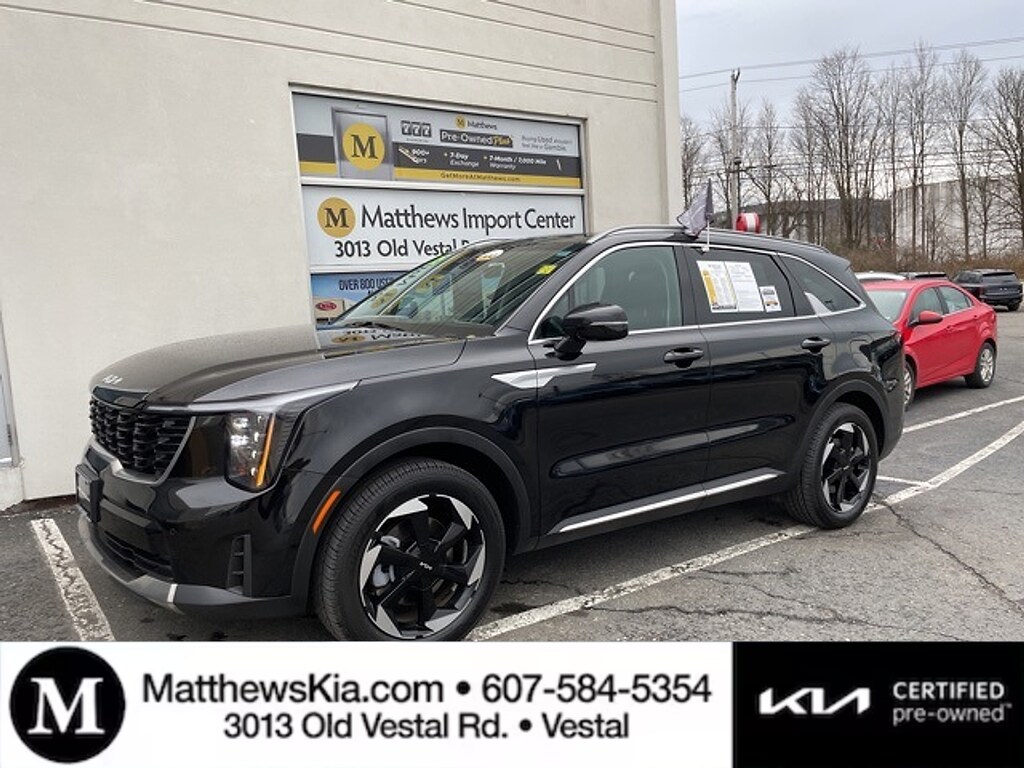 "Matthews Import Center promises each customer a thorough and confident 120-point inspection on our used inventory guaranteeing a relaxing and peace-of-mind experience. We are located behind Lowes in Vestal NY. Or call us at (607) 729 - 6261Matthews Import Center3013 Old Vestal RoadVestal NY 13850. Certified. Aurora Black Pearl 2025 Kia EX Sorento Hybrid AWD 6-Speed Automatic 1.6L Turbo GDI 4-Cylinder34/34 City/Highway MPGKia Certified Pre-Owned Details: * Vehicle History * Includes Rental Car and Trip Interruption Reimbursement. 3 month Sirius trial subscription * Warranty Deductible: $50 * Limited Warranty: 12 Month/12000 Mile (whichever comes first) ""Platinum Coverage""from certified purchase date * Powertrain Limited Warranty: 120 Month/100000 Mile (whichever comes first) from original in-service date * Transferable Warranty * 165 Point Inspection * Roadside Assistance"