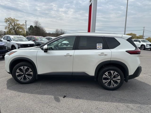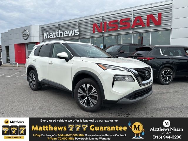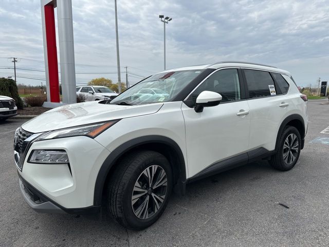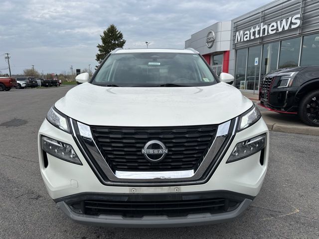 Certified. Pearl White 2023 Nissan Rogue SV PREMIUM AWD CVT with Xtronic 1.5L I3 Turbocharged DOHC 12V LEV3-ULEV50 201hp **NON SMOKER**, **RECENT OIL CHANGE**, **LOW MILEAGE**, AWD, ABS brakes, Alloy wheels, Electronic Stability Control, Front dual zone A/C, Heated door mirrors, Heated Driver & Front Passenger Seats, Heated Leather Wrapped Steering Wheel, Illuminated entry, Leatherette Door Trim Inserts w/Stitch, Low tire pressure warning, Panoramic Moonroof, Power Liftgate, PRIMATEX Leatherette Seat Trim, Rear Door Sunshades, Rear Personal Lights, Remote keyless entry, Security Alarm, Silver Painted Roof Rails, SV Premium B Package, Traction control.