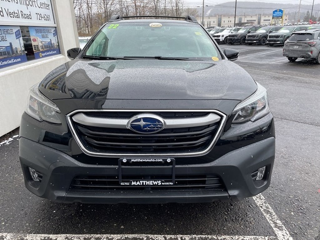 Matthews Import Center promises each customer a thorough and confident 120-point inspection on our used inventory guaranteeing a relaxing and peace-of-mind experience. We are located behind Lowes in Vestal NY. Or call us at (607) 729 - 6261Matthews Import Center3013 Old Vestal RoadVestal NY 13850. Certified. Crystal Black Silica 2022 Subaru Premium Outback AWD CVT Lineartronic 2.5L 4-Cylinder DOHC 16VOdometer is 13083 miles below market average! 26/33 City/Highway MPGSubaru Certified Pre-Owned Details: * SiriusXM 3-Month trial subscription $500 Owner Loyalty coupon & 1 year trial subscription to STARLINK * 152 Point Inspection * Vehicle History * Powertrain Limited Warranty: 84 Month/100000 Mile (whichever comes first) from original in-service date * Transferable Warranty * Roadside Assistance * Warranty Deductible: $0