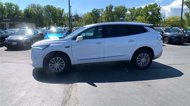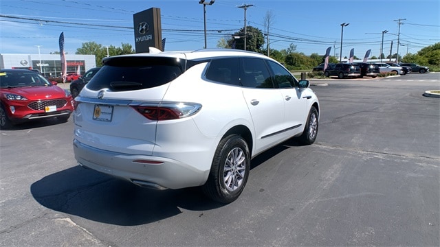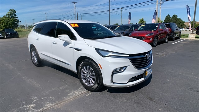 Summit White 2024 Buick Enclave Essence FWD 9-Speed Automatic 3.6L V6 SIDI VVT FWD, 18" Aluminum Wheels, 3.49 Final Drive Axle Ratio, 3rd row seats: split-bench, 4-Wheel Disc Brakes, 6 Speakers, 6-Speaker Audio System Feature, 6-Way Power Front Passenger Seat Adjuster, 7-Passenger Seating, 8-Way Power Driver Seat Adjuster, ABS brakes, Air Conditioning, Alloy wheels, AM/FM radio: SiriusXM with 360L, Auto High-beam Headlights, Auto-dimming door mirrors, Auto-dimming Rear-View mirror, Automatic temperature control, Brake assist, Bumpers: body-color, Compass, Delay-off headlights, Driver door bin, Driver vanity mirror, Dual front impact airbags, Dual front side impact airbags, Electronic Stability Control, Emergency communication system: OnStar and Buick connected services capable, Four wheel independent suspension, Front anti-roll bar, Front Bucket Seats, Front Center Armrest, Front dual zone A/C, Front Mounting License Plate Bracket Package, Front reading lights, Fully automatic headlights, Garage door transmitter, Heated door mirrors, Heated Driver & Front Passenger Seats, Heated front seats, Heated steering wheel, Illuminated entry, Leather steering wheel, Low tire pressure warning, Occupant sensing airbag, Outside temperature display, Overhead airbag, Overhead console, Panic alarm, Passenger door bin, Passenger vanity mirror, Perforated Leather-Appointed Seat Trim, Power door mirrors, Power Driver Lumbar Control Seat Adjuster, Power driver seat, Power Liftgate, Power Passenger Lumbar Control Seat Adjuster, Power passenger seat, Power steering, Power windows, Preferred Equipment Group 1SL, Premium audio system: Buick Infotainment System, Radio data system, Radio: Buick Infotainment System AM/FM Stereo, Rear air conditioning, Rear anti-roll bar, Rear reading lights, Rear window defroster, Rear window wiper, Remote keyless entry, Roof rack: rails only, Security system, SiriusXM w/360L, Speed control, Speed-sensing steering, Spoiler, Steering wheel mounted audio controls, Tachometer, Telescoping steering wheel, Tilt steering wheel, Traction control, Trip computer, Turn signal indicator mirrors, Variably intermittent wipers, Vehicle Health Management, Voltmeter, Wireless Apple CarPlay/Wireless Android Auto.