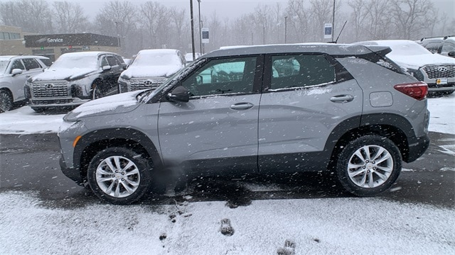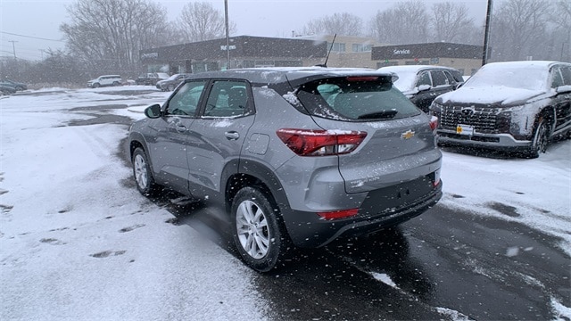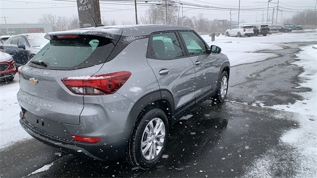 Sterling Gray Metallic 2023 Chevrolet TrailBlazer LS AWD 9-Speed Automatic 1.3L Ecotec Turbo DOHC SIDI w/VVT 2-Way Adjustable Front Head Restraints, 3.17 Axle Ratio, 4-Way Manual Front Passenger Seat Adjuster, 4-Wheel Disc Brakes, 6 Speakers, 6-Speaker Audio System Feature w/Amplifier, 6-Way Manual Driver Seat Adjuster, 7" Diagonal Color Touchscreen, ABS brakes, Air Conditioning, Alloy wheels, AM/FM radio: SiriusXM, Auto High-beam Headlights, Brake assist, Bumpers: body-color, Cloth Seat Trim, Compass, Delay-off headlights, Driver door bin, Driver vanity mirror, Dual front impact airbags, Dual front side impact airbags, Electronic Cruise Control w/Set & Resume Speed, Electronic Stability Control, Emergency communication system: OnStar and Chevrolet connected services capable, Exterior Parking Camera Rear, Flat-Folding Front Passenger Seatback, Front anti-roll bar, Front Bucket Seats, Front Center Armrest, Front License Plate Bracket, Front reading lights, Front wheel independent suspension, Fully automatic headlights, Illuminated entry, Knee airbag, Low tire pressure warning, Occupant sensing airbag, Overhead airbag, Overhead console, Panic alarm, Passenger door bin, Passenger vanity mirror, Power door mirrors, Power steering, Power windows, Preferred Equipment Group 1LS, Radio data system, Radio: Chevrolet Infotainment 3 System, Rear side impact airbag, Rear window defroster, Rear window wiper, Remote keyless entry, Ride & Handling Suspension, Security system, SiriusXM Radio, Split folding rear seat, Spoiler, Steering wheel mounted audio controls, Tachometer, Telescoping steering wheel, Tilt steering wheel, Traction control, Trip computer, Variably intermittent wipers, Wheels: 17" Silver-Painted Aluminum, Wireless Apple CarPlay/Android Auto.
