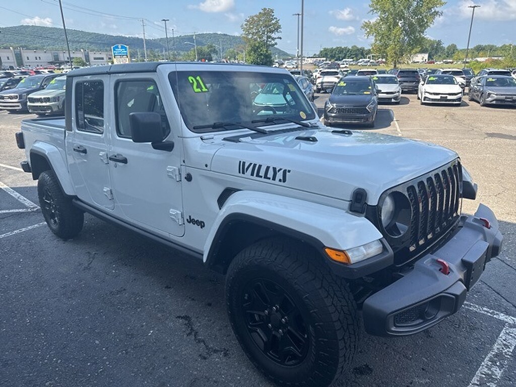Matthews Import Center promises each customer a thorough and confident 120-point inspection on our used inventory guaranteeing a relaxing and peace-of-mind experience. We are located behind Lowes in Vestal NY. Or call us at (607) 729 - 6261Matthews Import Center3013 Old Vestal RoadVestal NY 13850. Bright White Clearcoat 2021 Jeep Willys Gladiator 4WD 8-Speed Automatic 3.6L V6 24V VVTOdometer is 22247 miles below market average!